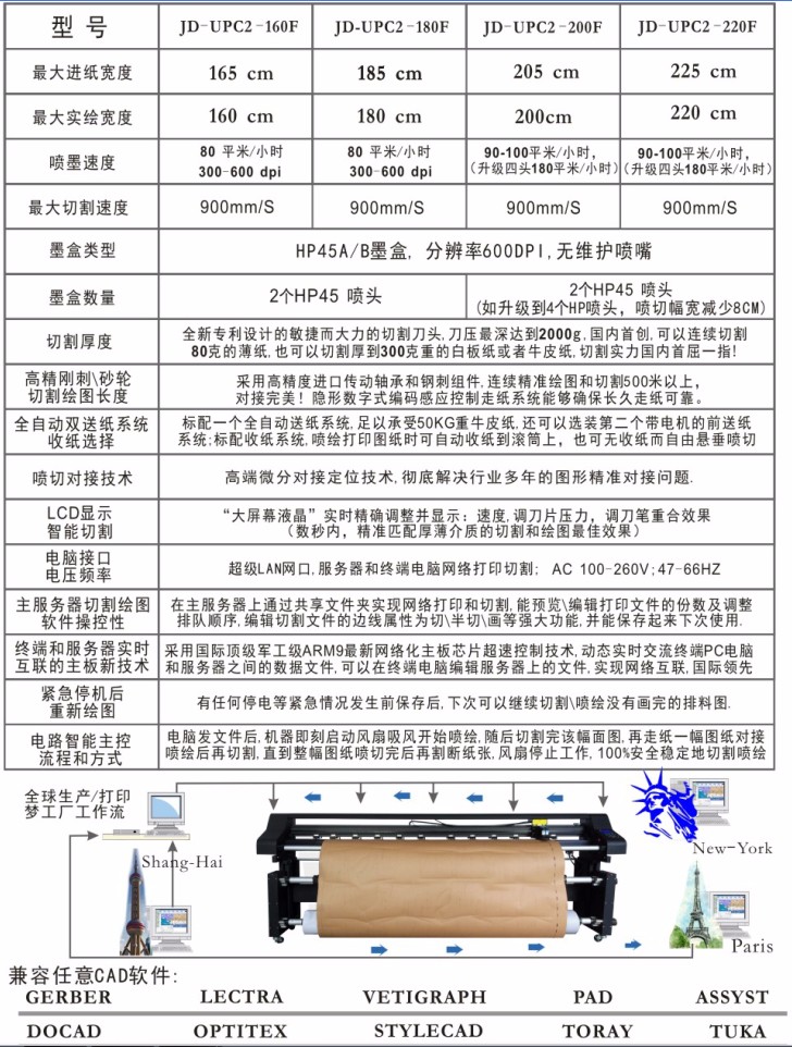 錦德UPC服裝紙樣噴墨切割一體機(jī),技術(shù)創(chuàng)新的巔峰之作!